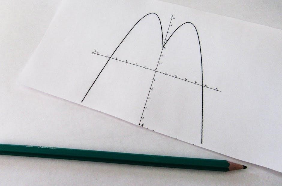 Exercises often involve plotting parabolas given the equation, converting between different forms of the quadratic equation (standard, vertex, and factored), and solving quadratic equations graphically. More complex PDF worksheets may include applications of quadratic functions, such as projectile motion problems. Mastering quadratic graphs is essential for understanding optimization and modeling curved relationships.